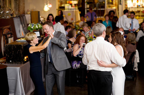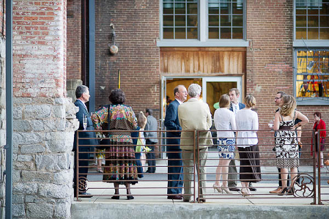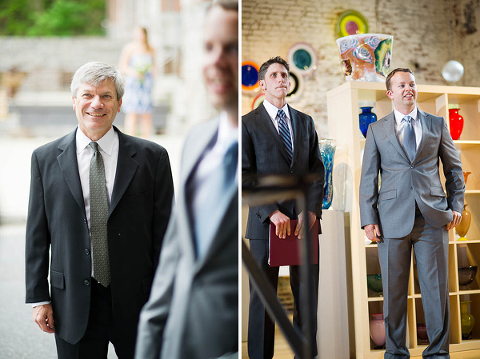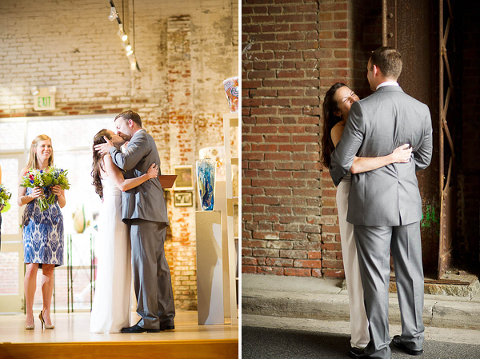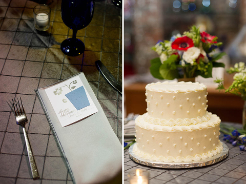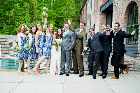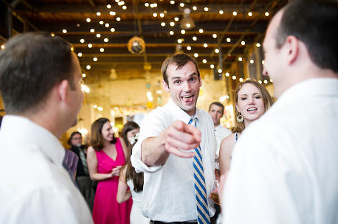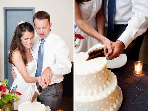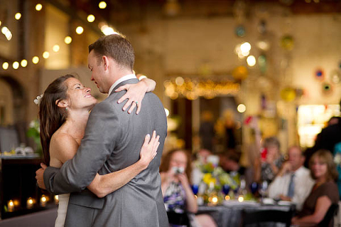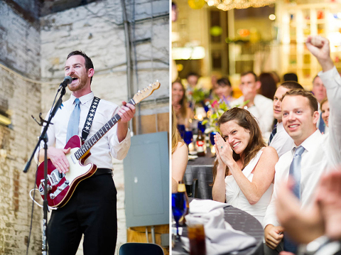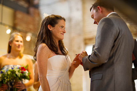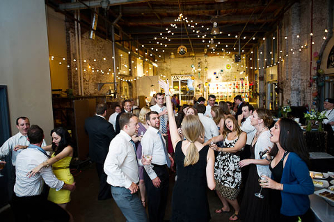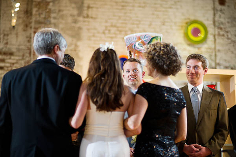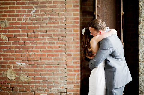 “Laura and Adam were married at the Corradetti Glassblowing Studio in Baltimore, which is in this neat little artists’ colony enclave and surrounded by lots of awesome warehouses and the like. Because they’re so cool, they let me do bride and groom pictures in said warehouse. Their wedding was elegant in its simplicity and plenty funky in its execution. Laura and Adam were married inside the glass studio and then partied it up in the same place. The couple’s friend, Chase, rocked hard in a serenade for the couple, rendering Lil Wayne’s “How to Love” into a moody romantic tune (hence, the surprise and laughter). I also really loved Chef’s Expressions’ presentation of the meal. They set up three stations where guests could pick up small plates… kind of like tapas. It was a great compromise between a buffet and a plated dinner. Laura and Adam have since moved to Tanzania for work!”
