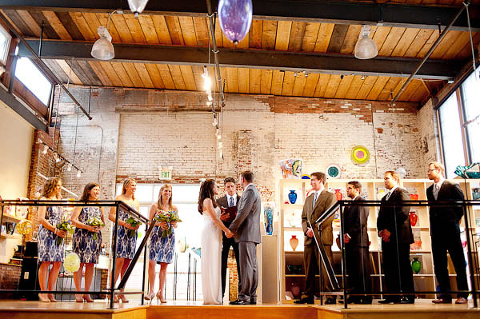 ooooooooomg yes! loving everything in this wedding – the venue, the decor, the bride in hot pink heels! any couple that has a wedding in a glass blowing studio, is one i’d love to be friends with. LOVE this!