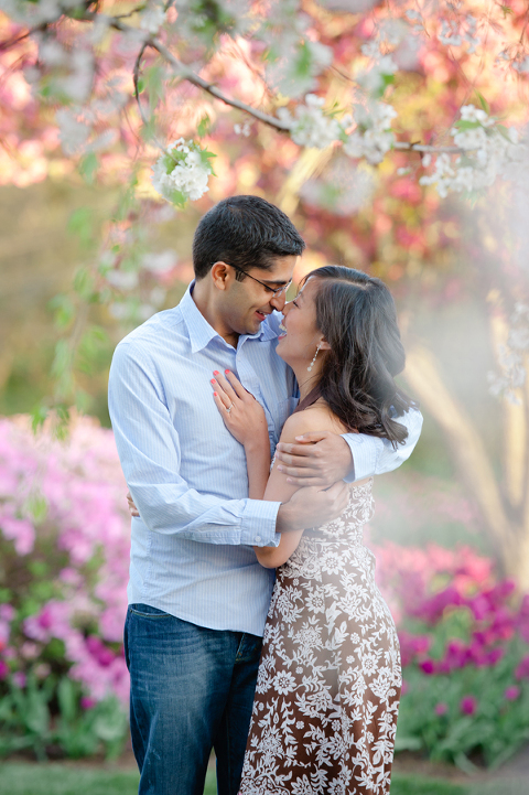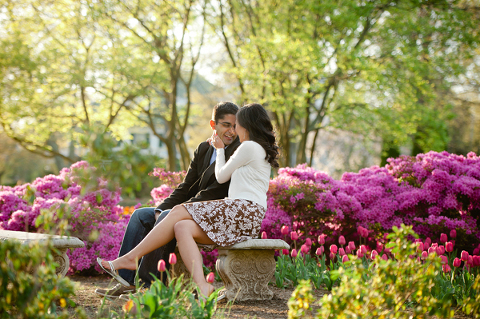 From the photographer, Marcella Treybig: “The location of this beautiful and very surreal blooming garden engagement session was Sherwood Gardens. With the warm year this past spring, all the flowers were in full bloom nice and early just in time for this April engagement session. Amanda and Karan are both doctors (just finished this year) and are now living in Berkley, CA doing their residency. A match made in heaven!”