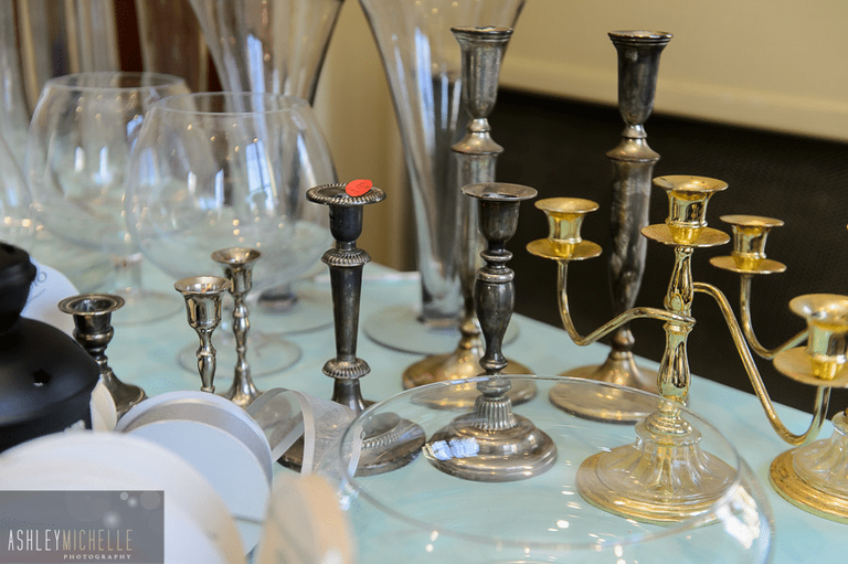 A long and crazy list of things you might be able to buy include: vases, votives, frames, linens, signage, accessories, furniture, table number holders, invitation pockets, envelopes, card stock, embellishments, rhinestones, stickers, washi tape, glitter paper, specialty stock, ribbon, rope, twine, bags/totes, serving pieces, glassware, china, office supplies, equipment, décor pieces, paper props – photobooth accessories, crafting supplies, bakeware – baking supplies, company tshirts/branding items, old bridal magazines/literature and so much more!