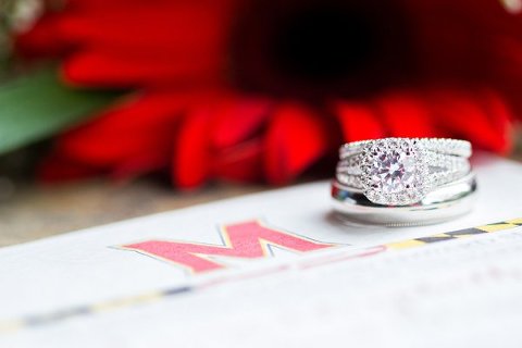 We adore themed weddings, and we’ve loved featuring couples that have had a variety of wedding themes, including a sports themed wedding and a carnival themed wedding. We know there are couples out there who have die-hard pride for their alma mater, and that’s why we’re loving this University of Maryland styled wedding shoot shared…
