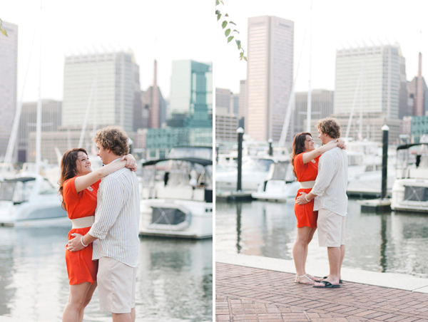 “Tiffany and Douglas are high school sweethearts who met at a bowling alley almost seven years ago. Since they both grew up in Baltimore and are true Baltimorians, Federal Hill Park was the perfect location for their engagement session. The park shows some of the best Baltimore has to offer – the Ravens Stadium and the Inner Harbor.