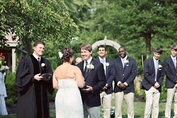 The photographer, Chelsea Hudson puts it into words better than we ever could: “What a day! Not only was it the hottest weekend of the year to date, but it was also the weekend of THE STORM that knocked us all out of electricity for far too long. How’s that for the makings of a wonderful outdoor garden wedding? The bride’s home lost power and the forecast called for yet another downpour at 5:30pm – which also happened to be the starting time of the ceremony. The bride and her parents could have gone postal over all of this, but they didn’t. I can’t tell you how impressed I was with their calm, focused, can-do-this attitudes. We had no fans, and no A/C, but Jen and Jason chose to stay calm and choose joy over panic as they were going to join their lives together that day: rain, shine, or wind. I count it a real privilege and joy to have been the photographer of their wedding. I witnessed such strength of character throughout the day, not only from the bride, groom, and wedding party – but even from the guests. Everyone was there to support Jen and Jason, and celebrate. I laugh as I remember everyone telling Jen, “Wow, what a great story this is going to be…” and Jen kept saying, “Ahhh! I don’t want a STORY, I want a wedding!” and in the end, she got both.”