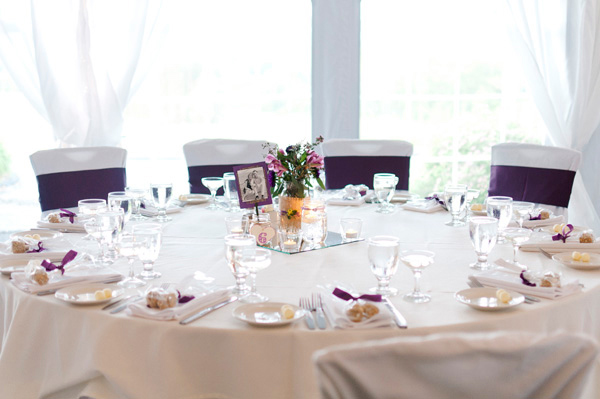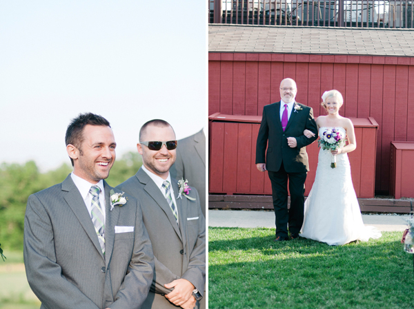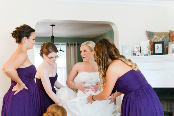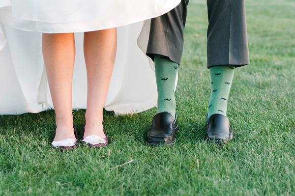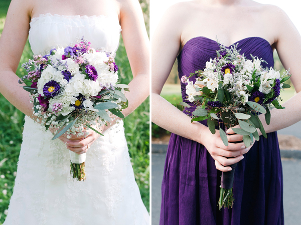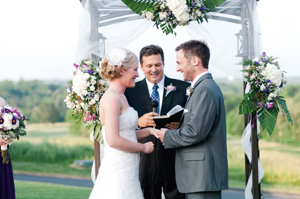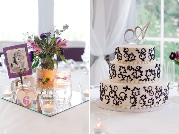 From the photographer, Krista A. Jones: Beth and BJ’s wedding was filled with so many personal DIY touches: Beth dressed up a cute pair of purple flats by adding fabric flowers to the top, turned an old window into a seating chart, and collected cards in a birdcage. Beth really loves to bake which is why it was so fitting that she made s’mores pops for favors as well as chocolate chip cookies for her guests. She teamed up with her soon-to-be mother in law to make some of the most adorable centerpieces I’ve ever seen with mason jars, candles, her engagement photos, burlap and ribbon. It was a beautiful night for a wedding and Beth and BJ were married as the sun set behind the mountains!