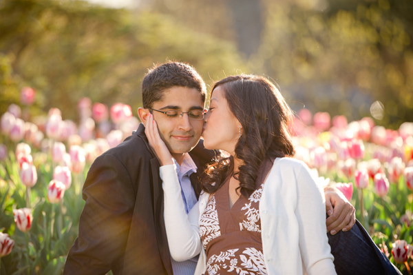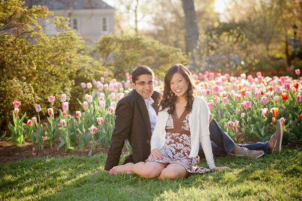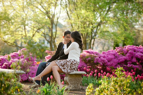 From the photographer, Marcella Treybig: “The location of this beautiful and very surreal blooming garden engagement session was Sherwood Gardens. With the warm year this past spring, all the flowers were in full bloom nice and early just in time for this April engagement session. Amanda and Karan are both doctors (just finished this year) and are now living in Berkley, CA doing their residency. A match made in heaven!”