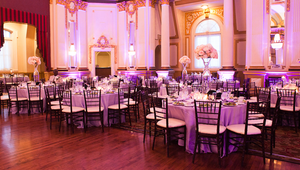 This is BEAUTIFUL. I love how the uplighting in the reception hall completely transforms the room!