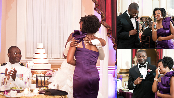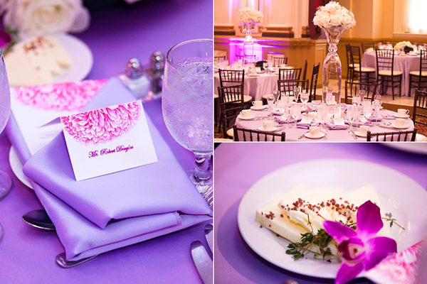 Wow! So elegant and beautiful. You can tell a lot of time and effort went into making this wedding perfect! The purple is a great color for the bridesmaids to wear!
