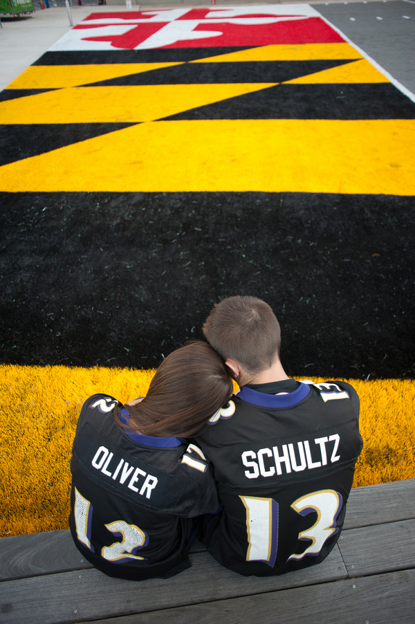 This sweet couple had us swooning over their beautiful photos as soon as we received them, and we couldn’t wait to share. Whether by the water or in the park, this Locust Point e-session shows a couple truly in love and sharing a mutual love as well: the Baltimore Ravens! Thanks to Meaghan Elliott Photography for this awesome e-session. Enjoy!